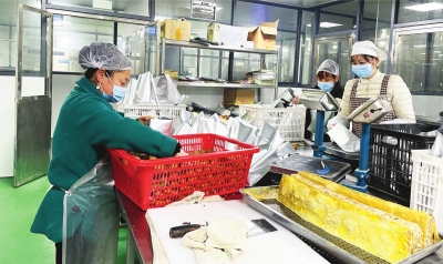 | 季氏黄陂三鲜食品加工厂里,工人正忙着打包。 记者郝天娇 摄 |