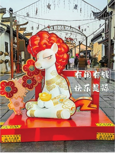 “马到福来”“马上发财”“马上有房”……记者走进各大商超、市场、潮玩店铺,春节限定专区已布置就绪,大红和金色为主的色调中,形态各异的“马元素”产品格外吸睛。