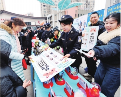 民警手持案例展板,面对面拆解电信诈骗套路。“原来冒充客服退款是这样一步步套钱的!”居民刘青玲边听边感慨。隔壁展台,治安民警发放文明养犬指南,并耐心解释禁鞭规定,“平安过年,从守规开始”。