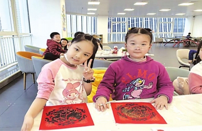 | 孩子们在托管班上体验非遗。 |