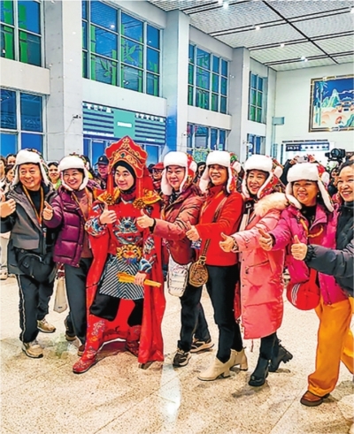 1月10日中午,名为“什邡号”的列车缓缓驶入成都安靖站。车门打开,列车工作人员与乘客们挥手告别。13天前的2025年12月29日,也是在这个车站,川剧变脸、朝鲜族舞蹈精彩上演。一场欢迎仪式后,464名老人登上“什邡号”,一路北上,开启冰雪之旅。中国铁路成都局集团有限公司(以下简称“国铁成都局”)自2021年起打造“熊猫专列”旅游列车品牌,“适老化服务+慢节奏深度游”的突出特点,精准契合银发游客的出行需求,多条热门线路经常一票难求。