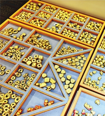在商场二楼,记者看到批发展柜中陈列着上百种款式的小金饰,克重多在0.1克至2克之间。市民吴女士与闺蜜一同前来选购,她看中了小马、金元宝等三件总重不足2克的挂饰,打算编成手链当作奖励自己的新年礼物。“批发价比商场首饰金价便宜,还能选择自己喜欢的元素组合,划算又开心。”吴女士说。