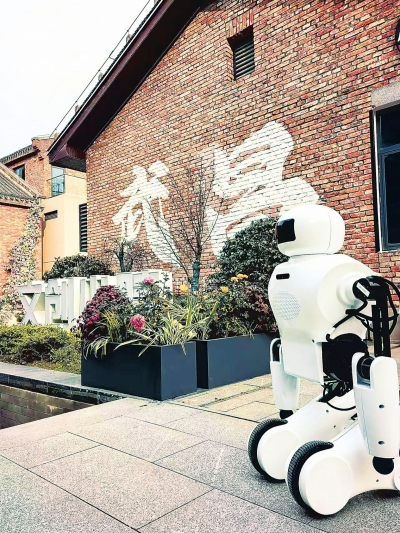 | 人形机器人在景区“上岗”。 通讯员供图 |