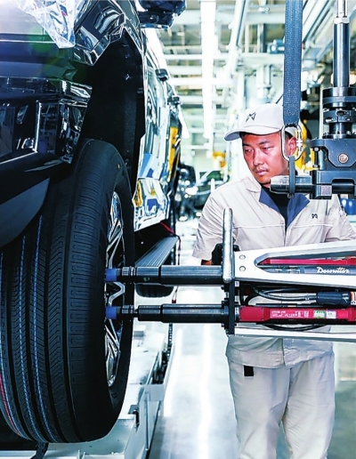 “这套柔性化产线能同时满足承载式与非承载式车身混流生产,为‘一车一价、一人一驾’定制模式提供支撑。”工艺工程师张杰说。