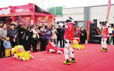 | 龟山电视塔科技庙会上,机器人、机器狗表演。 |