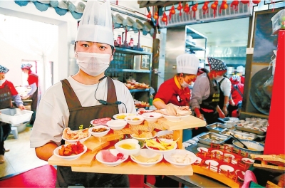 | 厨师为顾客制作团圆宴菜品。 |