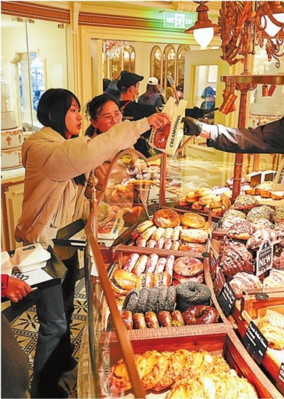 | 西安游客在一家烘焙店内选购。 |