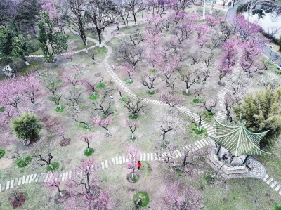 游客在武汉市青山公园赏花游玩(无人机照片)。