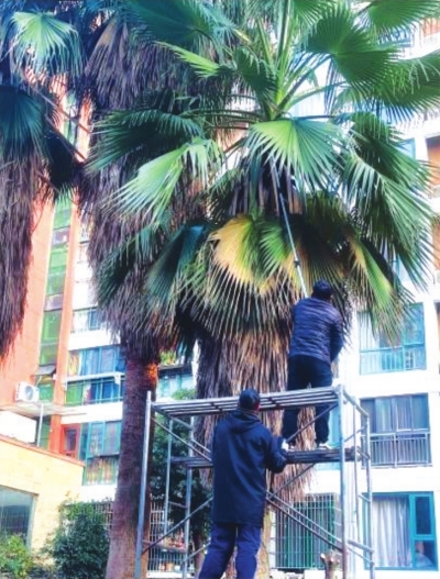 | 物业公司工作人员修剪树枝。 |