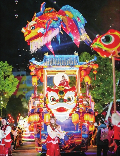 | 武汉欢乐谷,飞天鳌鱼巡游。 景区供图 |