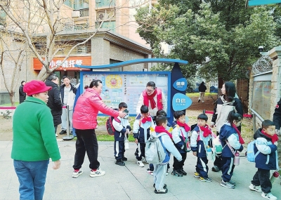 “小朋友,慢一点,跟着阿姨走。”“家长您好,请将车辆靠边停放,谢谢配合!”一句句温馨提示,一次次细心护送,志愿者们用责任和爱心守护着孩子们的平安。红色的志愿服在晨光中格外醒目,成为校园周边一道亮丽的风景线。