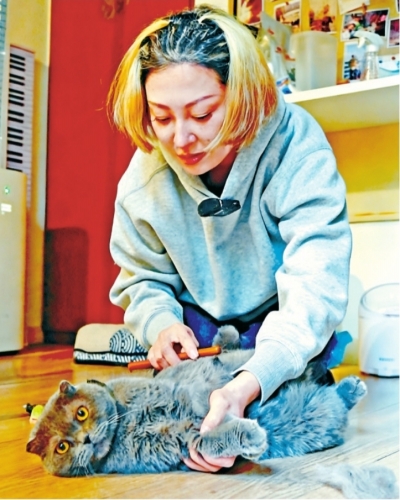 约30分钟的服务时间里,刘孟彤不仅要更换宠物粮与水、清理猫砂盆,还会通过宠物的排便、进食和精神状态判断其健康状况。“铲屎时一旦发现软便,或者未排尿可能存在尿闭情况,必须立刻告知主人。”完成基本照料后,她还会抽出时间与宠物互动,让它们放松情绪。