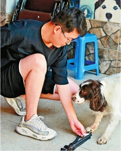 宠物驯导师,顾名思义,是从事训练、培养宠物良好习性,使其完成指定动作和任务的人。“90后”宠物驯导师卡尔,从事这行已有3年时间。他给记者展示了驯导的过程。卡尔手持一小块零食,清晰地发出指令:“坐!”面前一岁多的拉布拉多犬“艾克”眼神专注,顺从地压低身体,稳稳坐下。“咔嗒”一声轻响,卡尔几乎同时按下手中的响片,并将零食递上,同时用轻快的语调称赞:“好狗!”响片的声音成为“艾克”理解“做对了”的信号,而零食和抚摸则是它的奖赏。