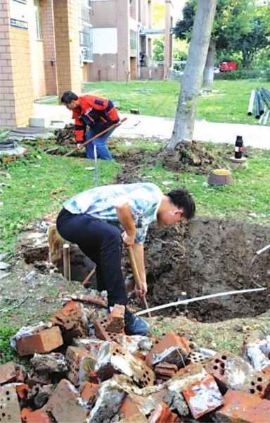| 改造前,管网破漏严重,工作人员查找漏点。 |