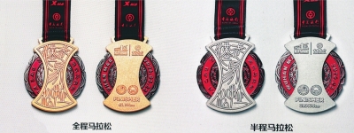 | 2026武汉马拉松完赛奖牌(左全马,右半马)。 |