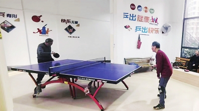| 改造后的架空层,乒乓球爱好者组队锻炼。 |