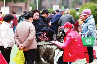 志愿者为居民缝补衣服。