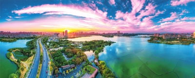 《晚霞映染金银湖》