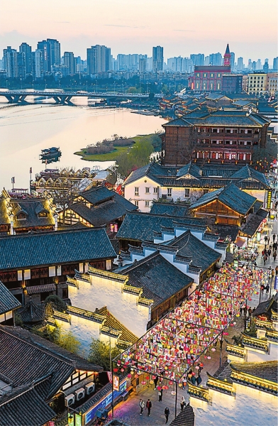| 通过海绵城市建设,常德穿紫河蝶变为“商业河”“旅游河”。 新华社发 |