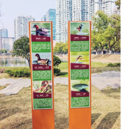 | 西北湖小微湿地入口处的科普牌。 通讯员吴琛岚 摄 |
