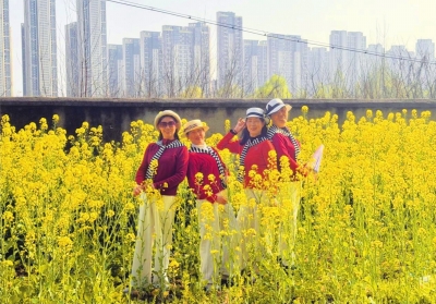 今年刚过完年,居民群里天天有人发照片直播“荒地”进度。三月中旬,第一朵油菜花开了,紧接着就像商量好似的,呼啦啦全开了。金黄一片,风一吹,花浪翻滚,那叫一个好看!