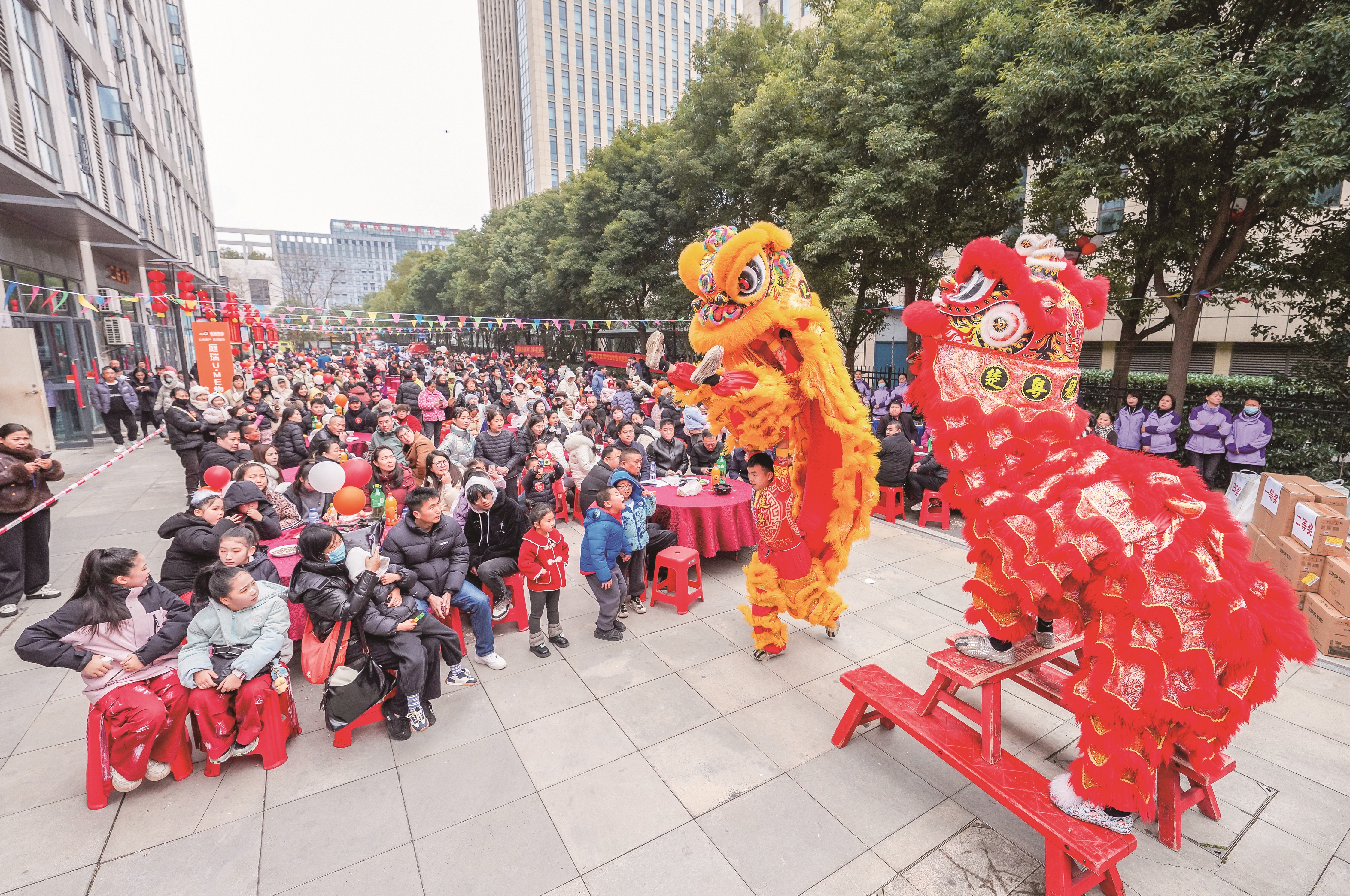2月3日,武汉经开区沌口街道永济社区举办百家宴,500多位居民共品百家菜。随着舞蹈、川剧变脸、魔术等节目登台上演,居民们纷纷拿起手机记录精彩瞬间。此次百家宴活动以“以食聚邻,以善暖家”为主题,通过文艺汇演、公益捐赠、便民市集和幸运抽奖等形式,不仅让邻里情在欢声笑语中升温,更让社区慈善的暖流悄然汇聚。楚天都市报极目新闻记者肖颢 姚岗摄影报道