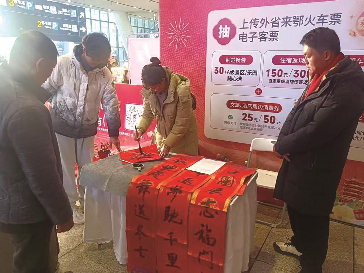 2026年2月2日,从山东青岛回武汉过年的陈善力先生,刚出武汉火车站,就收到了一份特别惊喜:湖北文旅赠送的“湖北好礼”盲盒,他拆开一看,里面是一幅喜庆的剪纸窗花。当天,在武汉天河国际机场和武汉火车站下机、下车的部分市民游客,也收到了礼物盲盒。这天,湖北文旅“票游湖北 ‘马’上有礼”活动正式启动,在湖北过大年的游客,在指定平台上传来鄂机票、火车票,可参与抽奖,有望获得景区或专题乐园免费门票,同时还可享受多重福利。