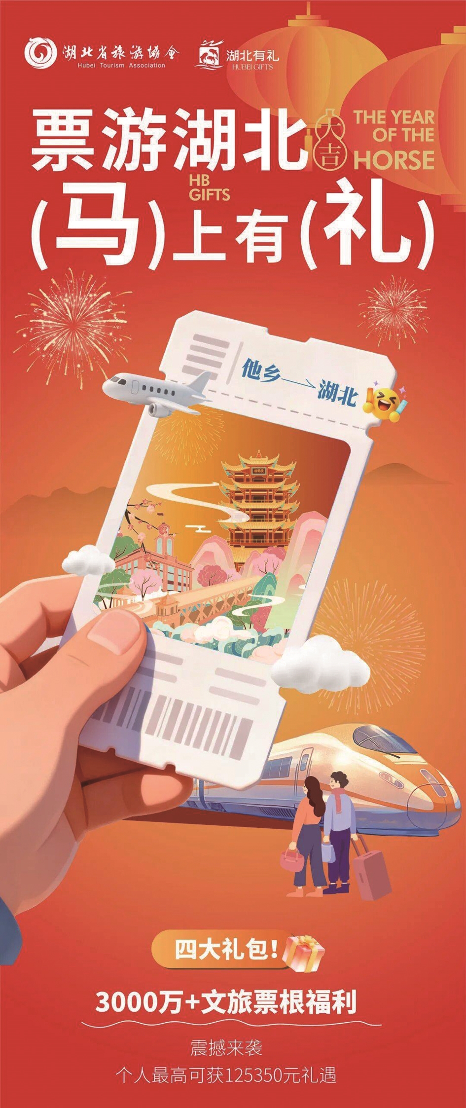 为营造喜迎宾客、乐享消费的氛围,助力湖北省打造世界知名文化旅游目的地,湖北省文化和旅游厅联手多家单位,推出“票游湖北 ‘马’上有礼”活动,以火车票、飞机票为载体,通过一系列优惠礼遇,鼓励各地游客来鄂畅游。