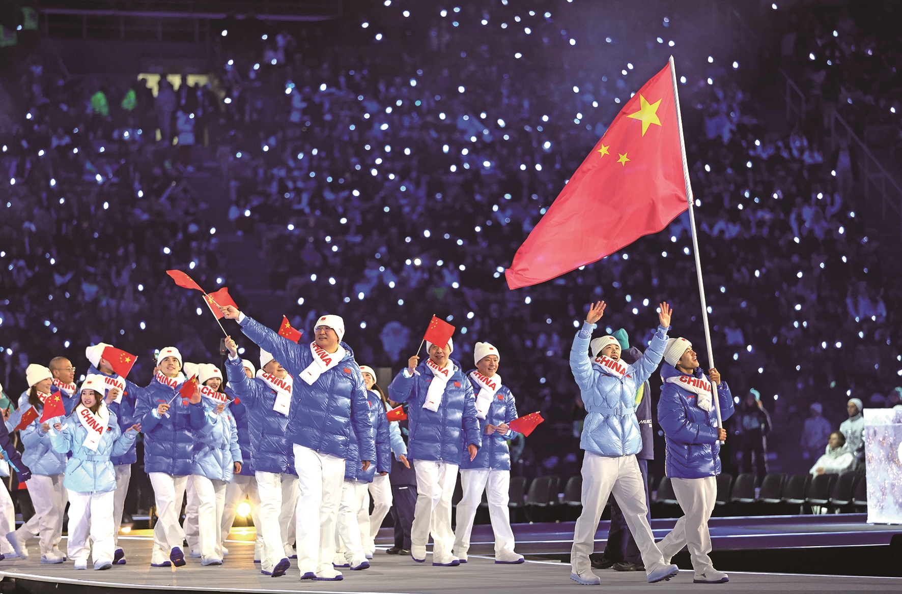 当地时间2月6日,中国体育代表团在开幕式上入场 新华社发