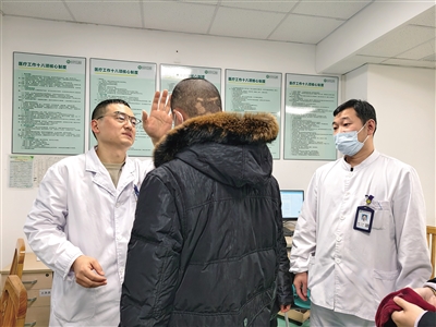 近日患者到医院复查时,神经外科医护人员查看患者的恢复情况