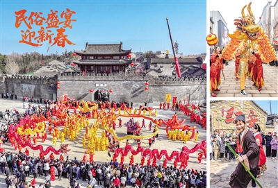 2月11日,“锵锵”锣鼓声在刚刚修葺一新的红安民主街激荡回响,16条色彩艳丽的龙灯沿街飞舞,大别山第二届非遗民俗文化旅游节暨红安影视幻城新春灯会热闹开场。 街道两侧被市民围得水泄不通,男女老少摩肩接踵,骑在家长肩头的孩子,挥舞着小手欢呼雀跃。楚天都市报极目新闻记者李辉 通讯员王亮摄影报道
