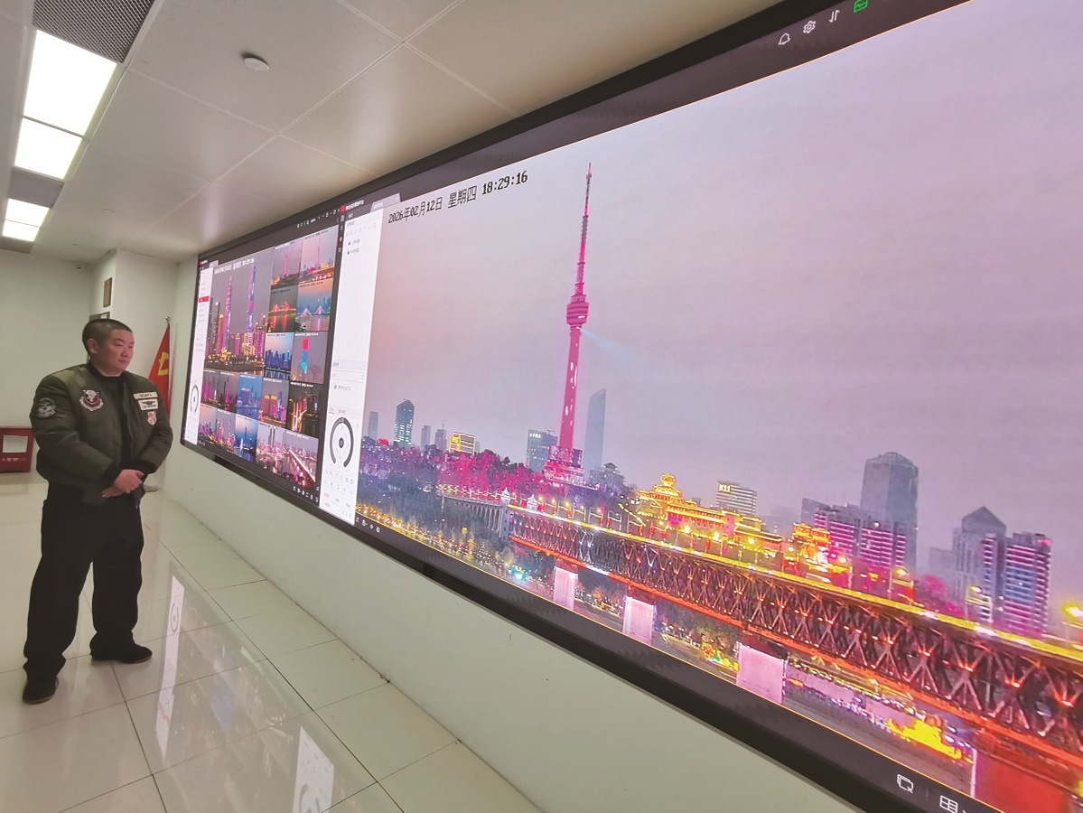 惊艳的灯光秀背后,是武汉城管人的默默守护。2月14日晚6时,武汉市城管执法委市容景观秩序处何倩妮与工程师胡蕓遵来到天悦外滩金融中心32楼的景观照明智能监控中心。他们注视着墙上巨大的监控屏,龟山电视塔亮了、黄鹤楼亮了,鹦鹉洲长江大桥与长江大桥、长江二桥亮了……15分钟后,巡查完毕,楼宇与地标如期点亮,他们这才放下心来。