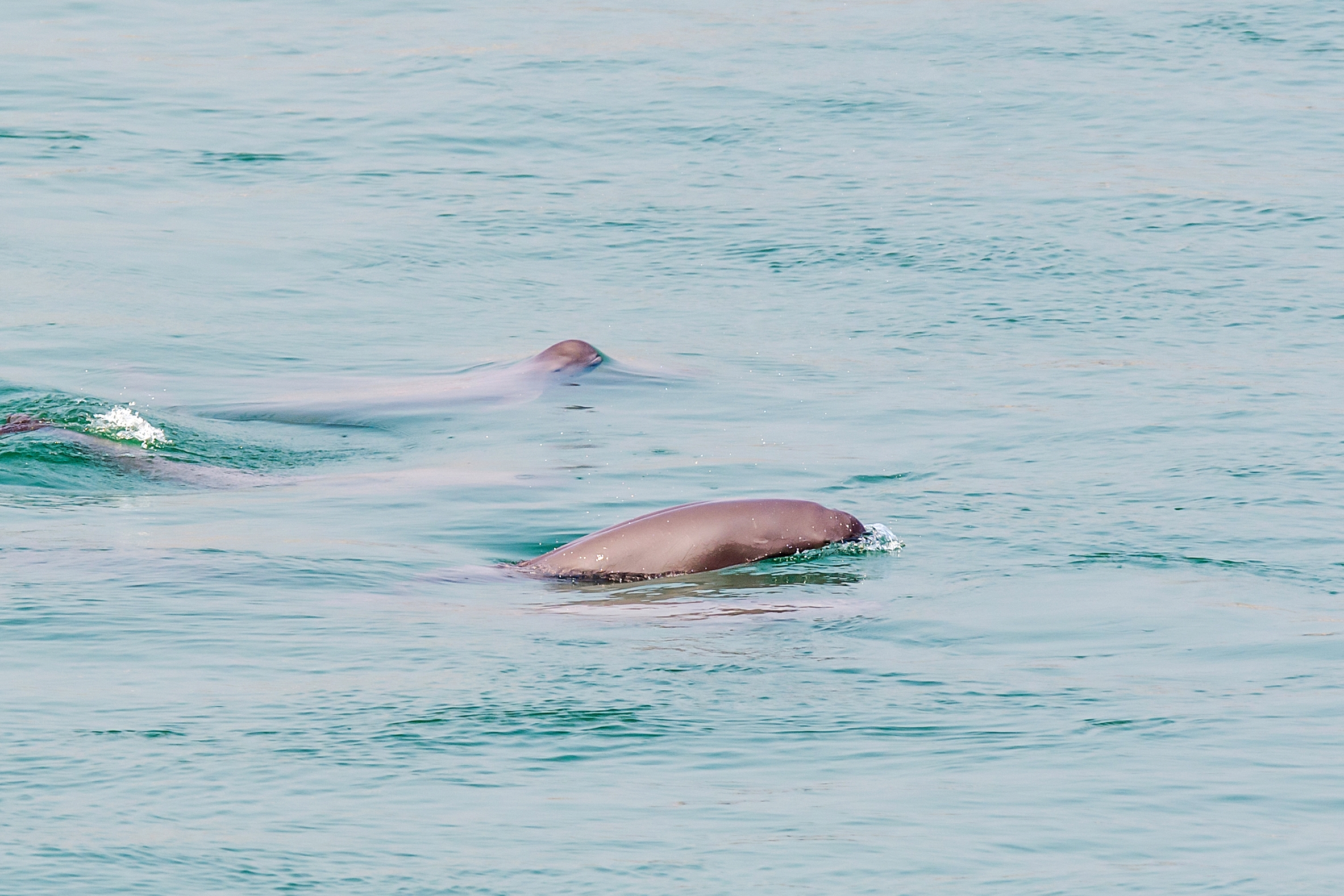 这份坚持,很快迎来惊喜。当天中午,他拍到江豚在一艘货轮旁逐浪的画面。