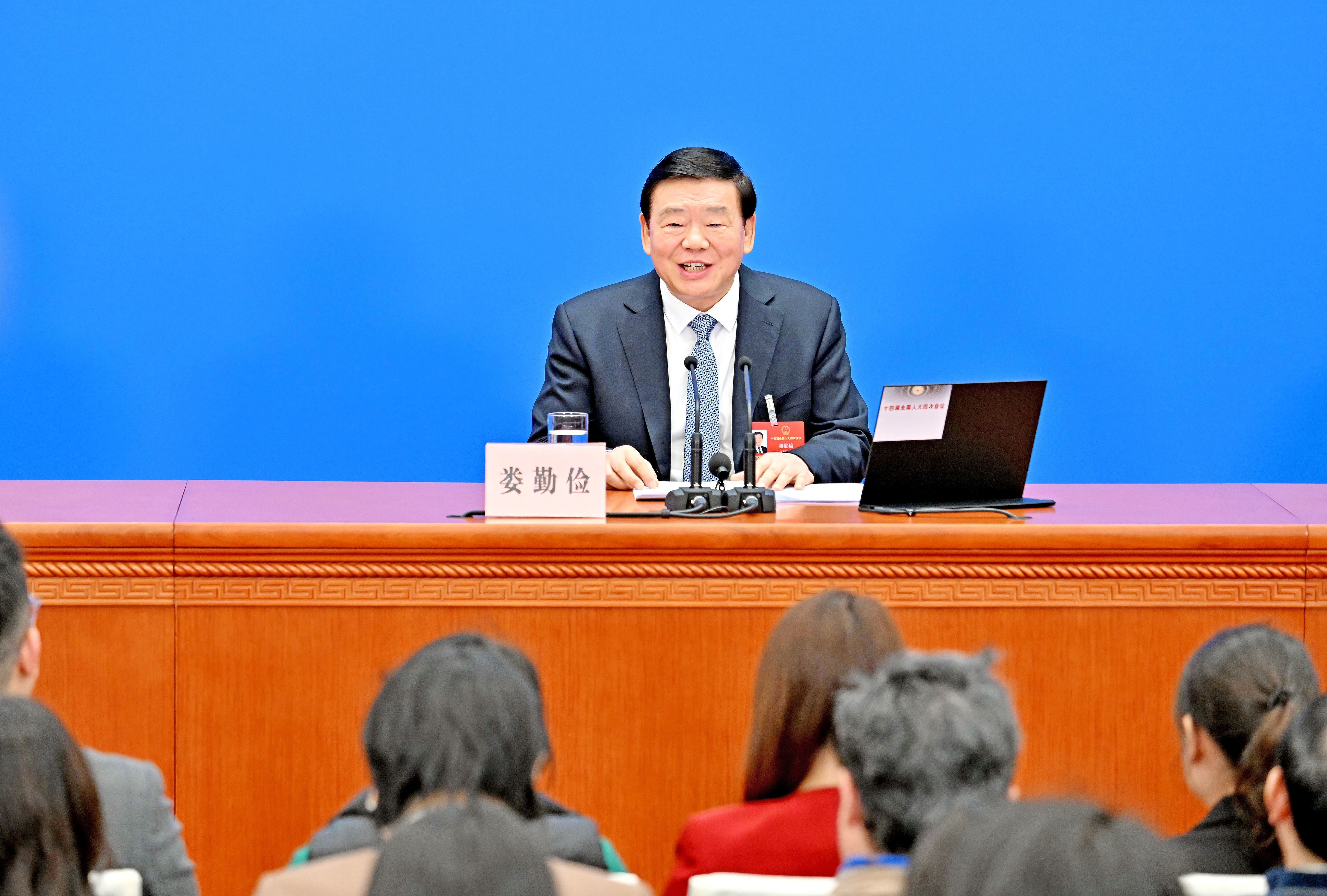 据新华社电 十四届全国人大四次会议3月4日中午举行新闻发布会,大会发言人娄勤俭就会议议程和人大有关工作回答了中外记者提问。