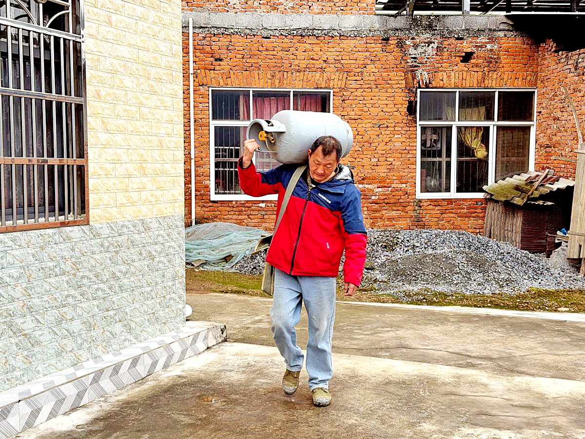 从那以后,全村70余名老人,只要一个电话,他便开着三轮车爬坡过坎,将气瓶送到家、安装好、试好火,还顺手检查灶具电路。镇上液化气站的曹老板得知原委后,每瓶气专门优惠20元,以补贴油费。