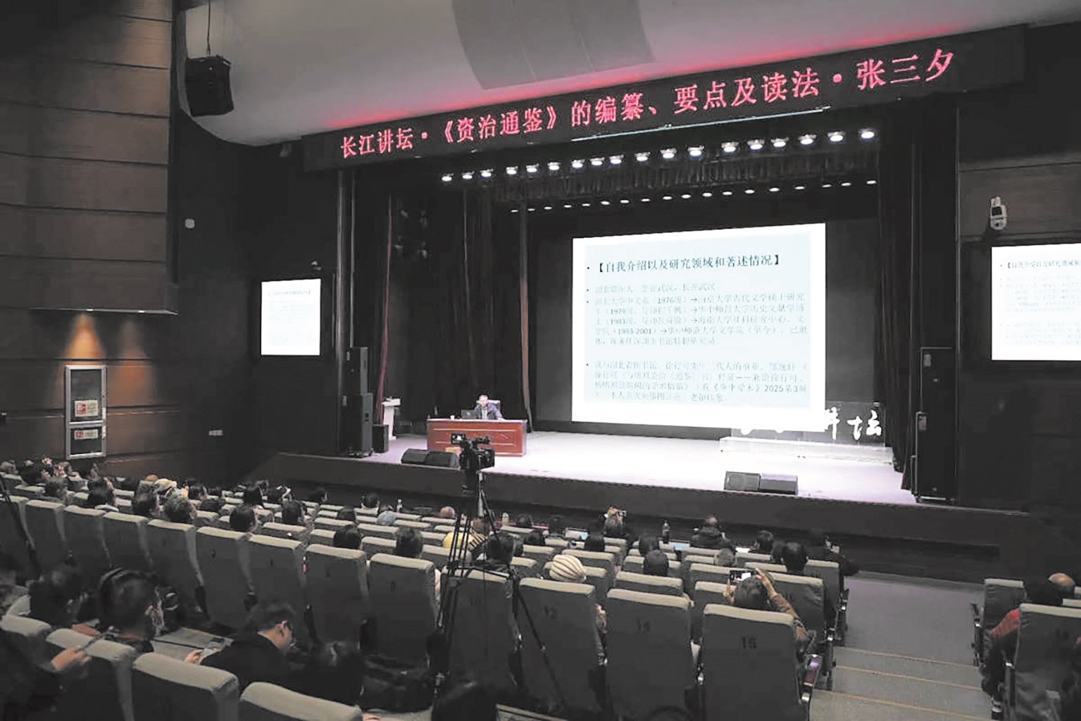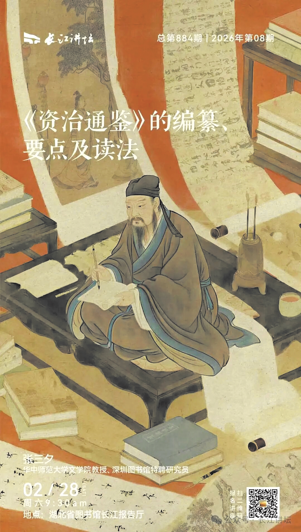 2月28日,华中师范大学文学院教授、博士生导师、深圳图书馆特聘研究员张三夕莅临长江讲坛“马年第一课”,以《〈资治通鉴〉的编撰、要点及读法》为题,带领现场读者穿越千年历史长河,领略这部史学巨著的深邃智慧与当代价值。