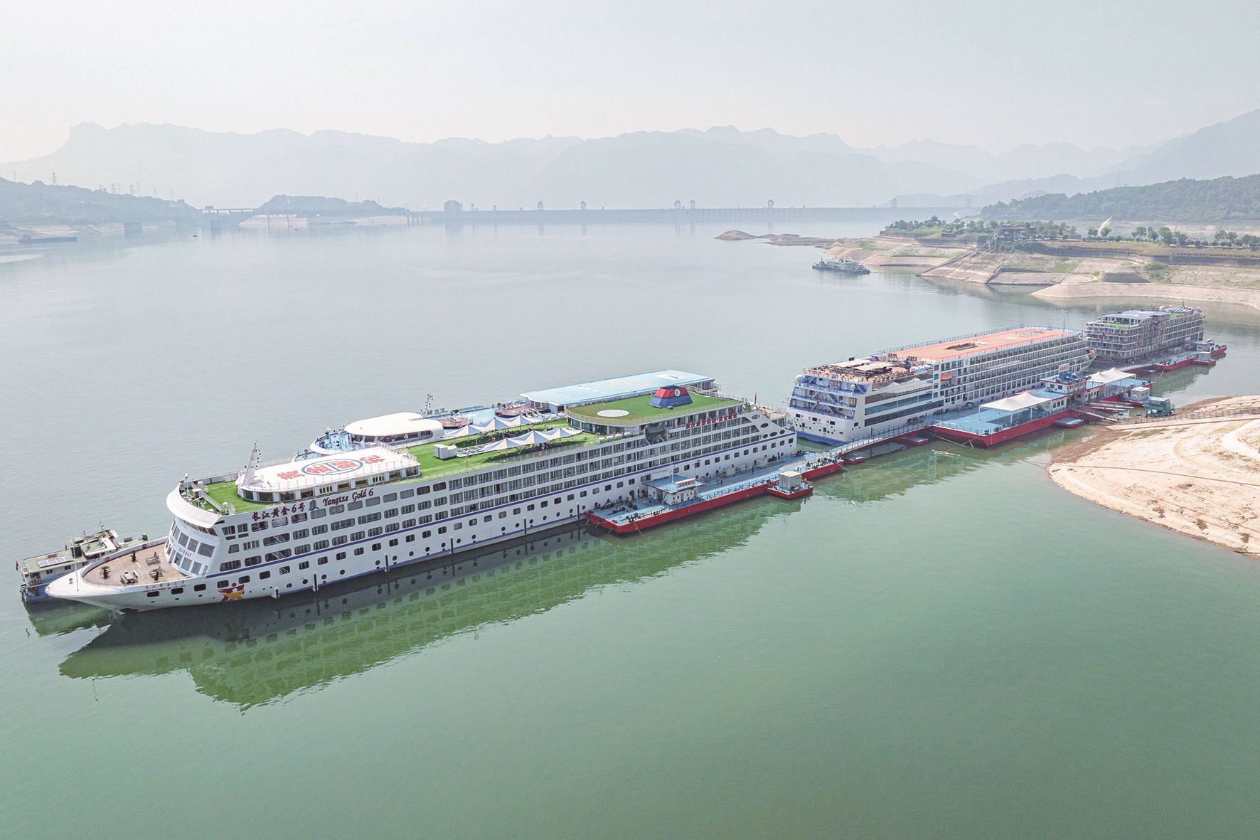 湖北宜昌推进绿色航运,通过港口岸电布局建设,推广新能源船舶应用,港口告别了昔日众多船舶油烟四散的现象。图为客轮停靠在湖北秭归港码头使用岸电。新华社发