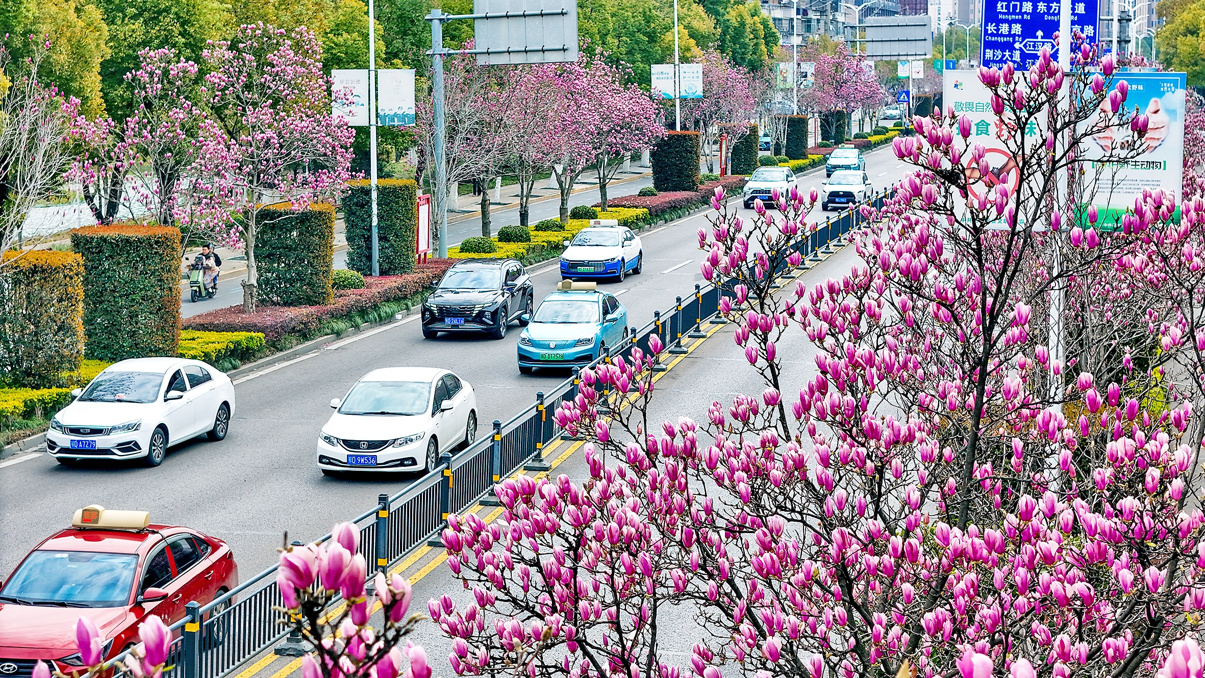 春风拂岸,繁花缀城。近日,荆州各赏花点位已进入最佳观赏期,市民无需远行,便能在家门口邂逅一场“一路一花、步移景异”的视觉盛宴。图为荆州江津中路的紫玉兰像一个个紫色的酒杯,斟满了春日浪漫。
