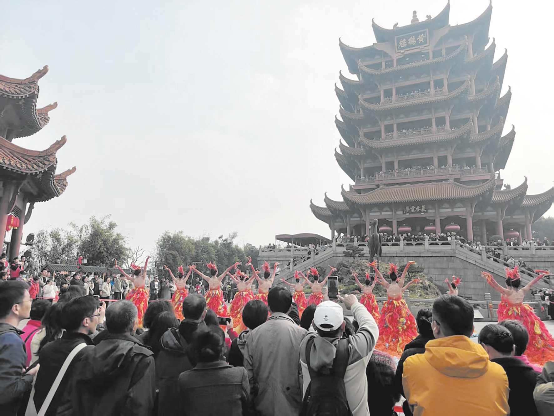 记者从黄鹤楼公司了解到,自3月7日起,每逢周末及节假日,黄鹤楼日间都将以“场景+演艺”的全新方式打开!匠心打造的室外实景演出《鹤舞长河》以“鹤”为媒,串联园内核心景点,将器乐、舞蹈、武术、诗词与楚礼融为一体。千年历史不再遥远,在实景演艺中鲜活流淌。