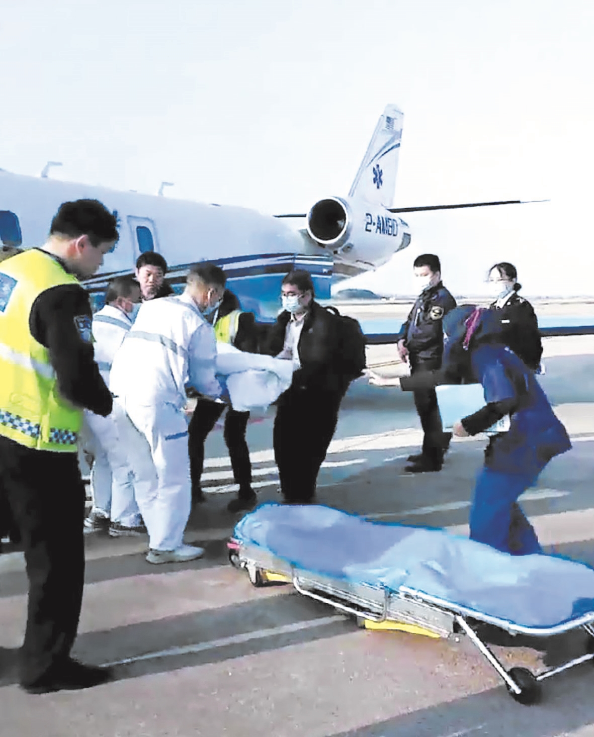 12日10时许,救护车从医院出发,12时许到达沙巴州亚庇机场,机场工作人员引导清关和登机。13时许,医疗包机从亚庇机场起飞,16时40分许降落武汉天河机场,救护车直达停机坪接驳。18时许,病人被送达武汉大学人民医院,与等候的专家团队完成交接。
