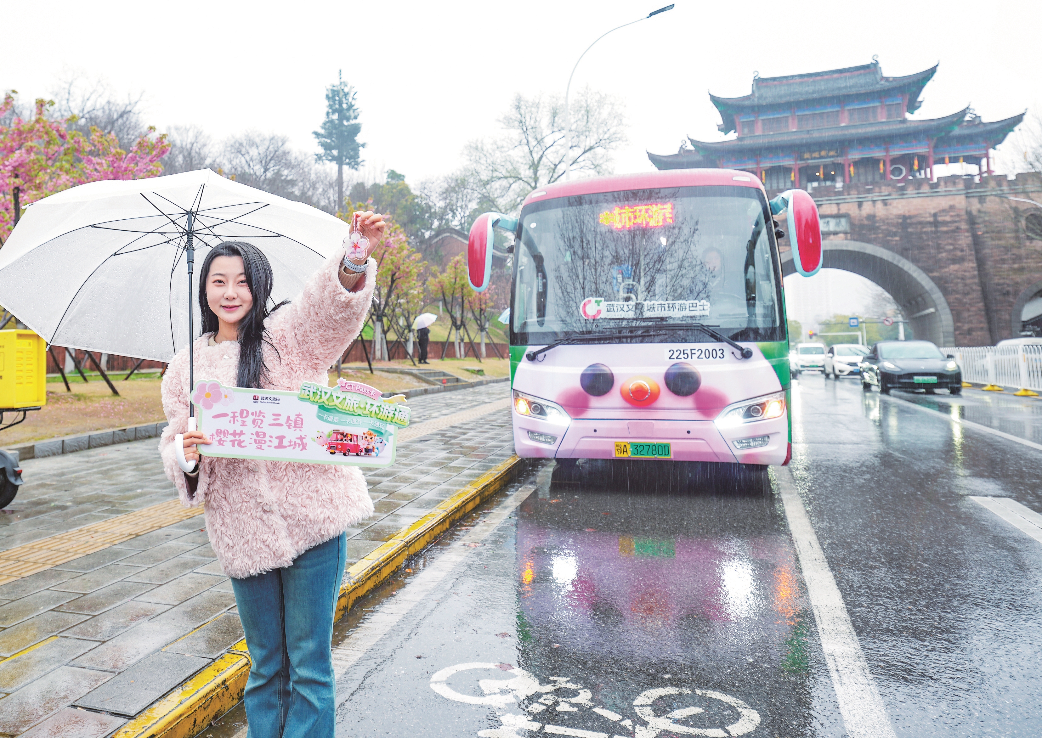 为迎接2026年赏樱热潮,武汉文旅集团依托“汉马赏樱季”城市级IP,全面升级推出2026汉马赏樱季武汉文旅城市环游活动。武汉文旅城市环游巴士作为本次活动的陆路核心,焕新升级打造沉浸式体验,植入贴合马年的全新“文旅马”IP,和“蒜坨坨”“江猪猪”一起,让巴士成为春日武汉路上独特的“流动赏樱风景线”。车内免费提供环游手册,集打卡印章、导览地图及赏花指引为一体,还设置专属打卡区,方便游客记录旅途,引导游客深度漫游;语音讲解沿途景点历史文化,让游客赏樱之余,读懂江城的历史底蕴与人文魅力。