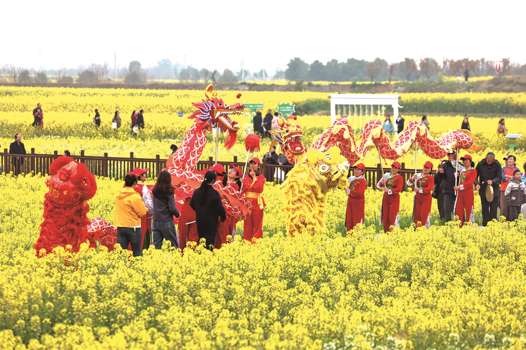 傅廷栋、李培武、朱蓓薇三位中国工程院院士亲临现场,为油菜产业高质量发展赋能;节会吉祥物“油宝”正式亮相,四片明黄花瓣搭配萌趣造型圈粉无数;人形机器人带来《花海律动》舞蹈秀,与演员穿梭互动、派发文创好礼,传统民俗与现代科技碰撞出别样火花。