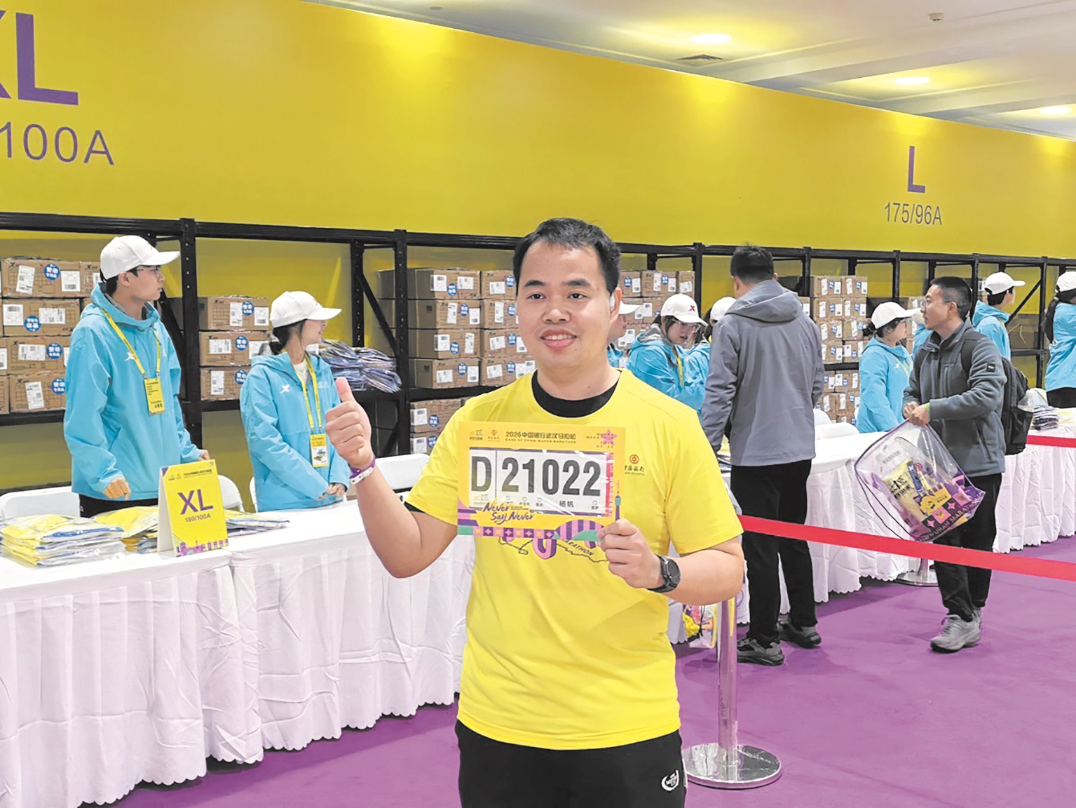 “2026武汉马拉松欢迎你!”“祝您参赛愉快!”报到领物现场,很多选手拿出手机录制着自己领取物资的全过程。许多选手告诉记者,不光是在记录着报到环节的“仪式感”,更是在记录着这些热情的志愿者,赛事热情的氛围,从见到他们那一刻就感受到了。