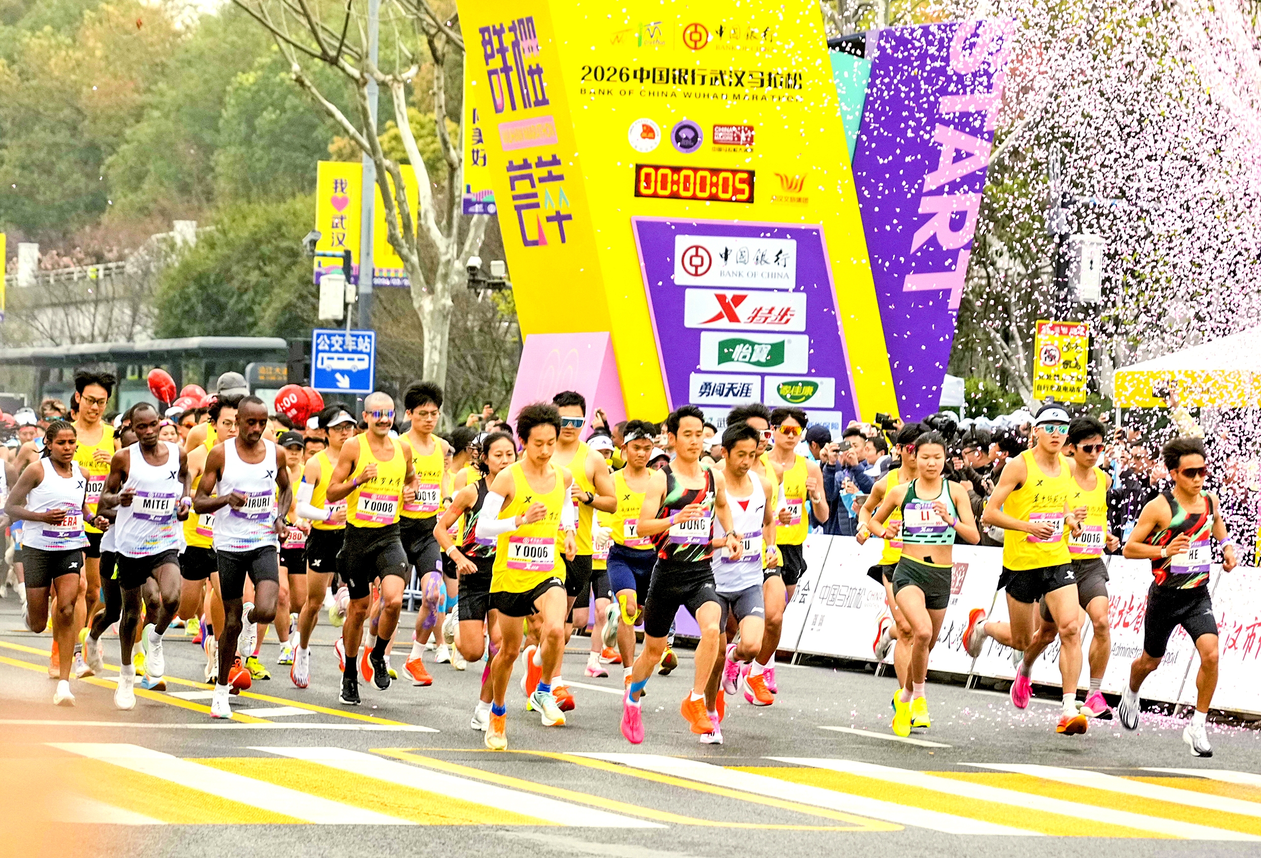群樱荟萃,跑向春天!3月22日,2026中国银行武汉马拉松激情开跑,来自69个国家和地区的30000名跑者穿过樱花雨,从长江北岸起跑,在长江南岸冲刺。赛道之上,最动人的风景,是跑者全力以赴的模样,选手们跨越“一城两江三镇四桥五湖”,在武汉留下一段难忘的春日记忆。