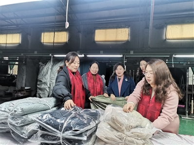 “能为甘肃灾区同胞赶制过冬服装感到很荣幸,加点班也愿意。”在鑫玛服饰做工的马桥镇垅口冯村一组50岁村民唐桃珍说。