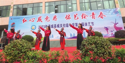 记者走进校园看到,百年党史和党的二十大精神宣传栏随处可见,红色是校园的亮丽底色。此次活动将体艺与红色文化相结合,活动现场,来自师生们的《母亲的微笑》《中国功夫》等15个节目依次上演,台下学生雀跃,掌声雷动。