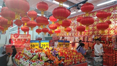 过了腊八就是年。随着春节临近,我市年味儿越来越浓,大街小巷、商场超市处处张灯结彩迎新春,红灯笼、对联、福字、迎春年画,各种春节元素竞相亮相,处处洋溢着喜气洋洋的年味。