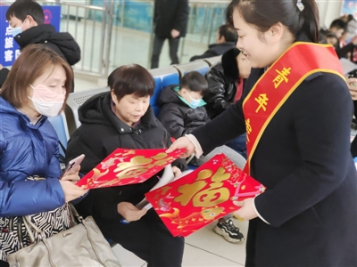 记者从团市委了解到,今年春运期间,全市共组织318名志愿者,他们身穿红马甲,穿梭在各个客运场所,为广大旅客提供暖心服务。
