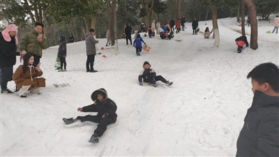 2月26日下午,咸宁的降雪告一段落,十六潭公园依然被冰雪覆盖,这里变成了天然的冰滑雪场。不少市民前来玩雪,尽情畅享冰雪快乐。在此,提醒广大市民,在享受滑雪带来快乐的同时,一定要注意自身安全,爱护公共设施。