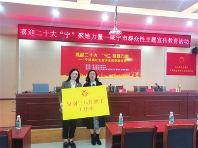巾帼建功新时代,群芳辉映“半边天”。在咸宁实验外国语学校有个“泉润”三八红旗手工作室。“泉”,意为源头,源源不断之意,也代表知识、智慧、力量、活力等;“润”,为润泽之意。“泉润”三八红旗手工作室自2019年成立以来,用爱护航学生成长,传播家庭教育理念,回报社会,同时吸引一批又一批优秀青年加入到团队中来。并于同年9月获得咸宁市首批“示范三八红旗手工作室”荣誉称号。